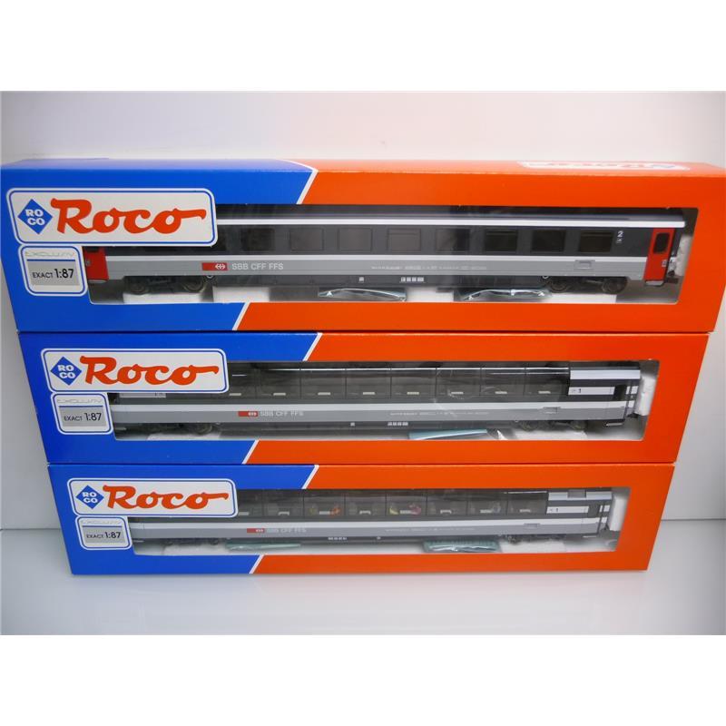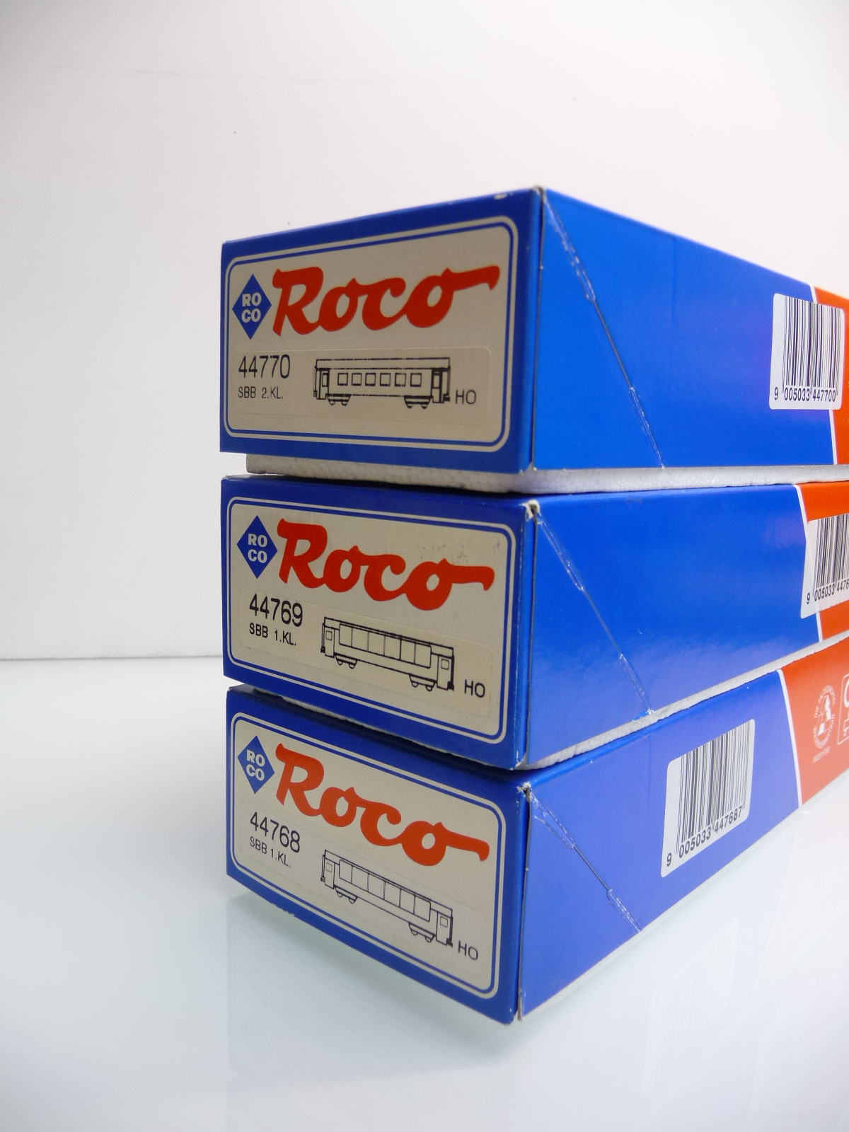Roco H0 1:87 2L= DCArtikelnummern 44768 + 44769 + 44770Zustand wie NEUWARE in Originalverpackungmit allen Zurüstteilen, nicht zugerüstetExtrem seltenes 3-teiliges Set der SBBin perfektem Zustand !!Der Preis gilt für alle 3 Waggons zusammen