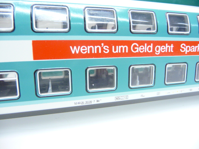 » » » » Sachsenmodelle 14427 H0 Doppelstockwagen der DB Kl. 2 Sparkasse türkis