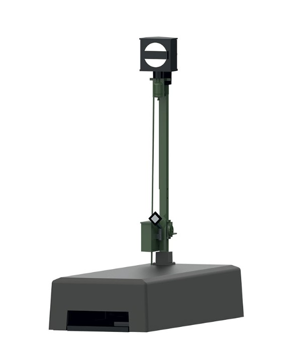 Mast mit beweglicher vorderer und hinterer Blende.